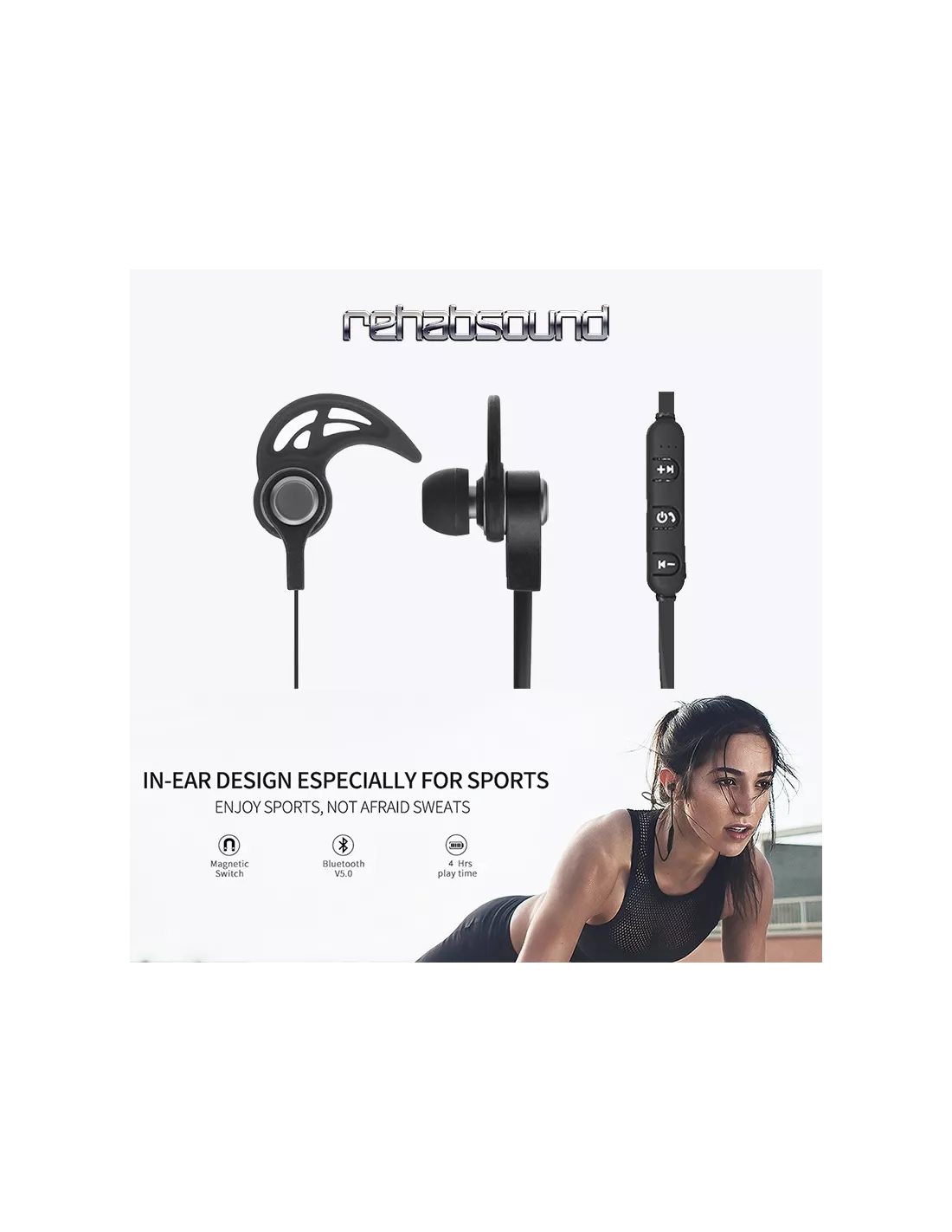 Discover freedom of movement with our Rehabsound Bluetooth 5.0 earphones, designed for sports and more. Enjoy crystal-clear wireless sound while staying active. The lightweight, comfortable earpieces adapt perfectly to your movements, whether in the gym or outdoors.