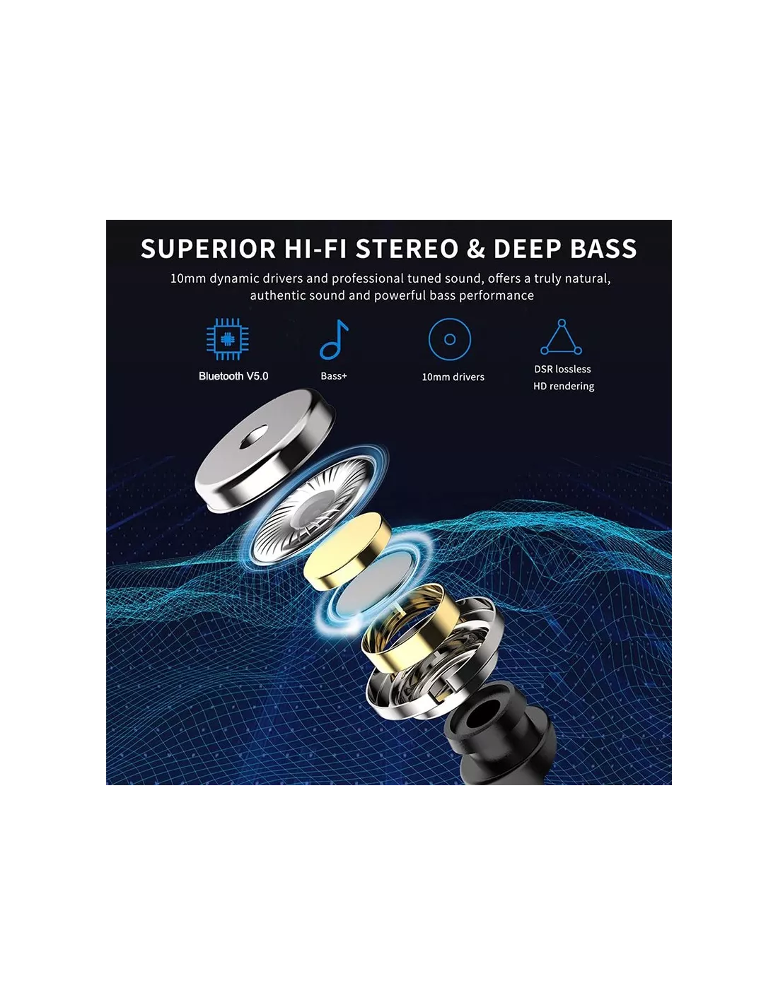 - 10mm neodymium membranes offering high-definition sound quality.