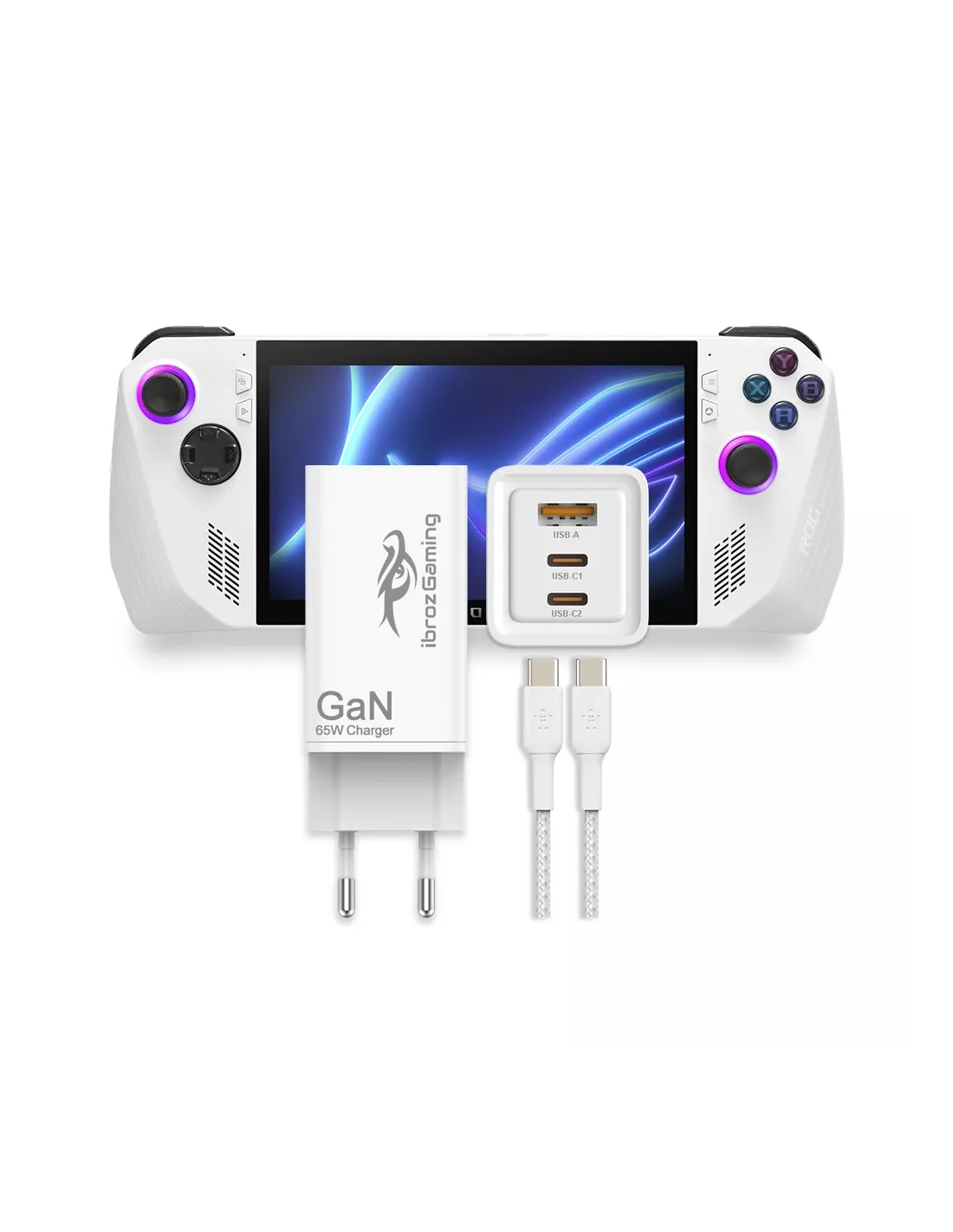 The Ibroz Gaming GaN 65W is the dedicated charger for the AsusROG Ally console. It delivers the power you need, fast, to get the most out of your console.