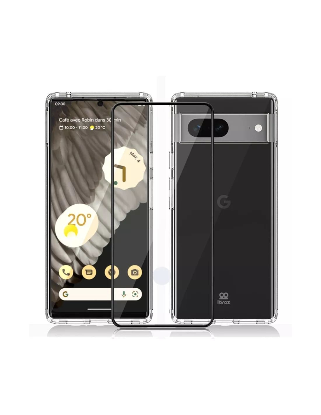 The rear panel is scratch-resistant and made of rigid acrylic similar to glass, giving it the ultimate transparency to highlight the design and color of the Google Pixel 7.