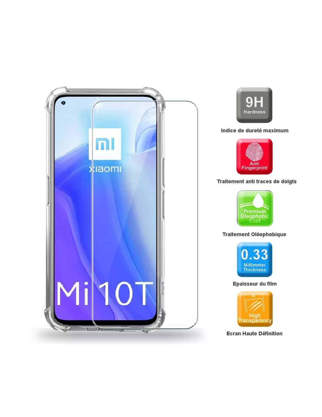 Supplied with 9H top-qualityscreen protection, anti-scratch and anti-breakage, this complete package will effectively protect your Xiaomi Mi 10T against all the hazards of everyday life, while letting the mobile's design shine through.
